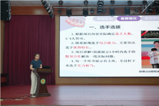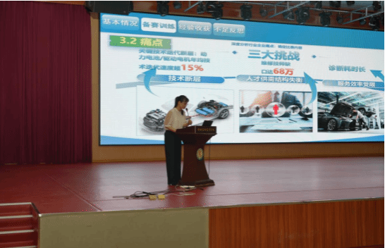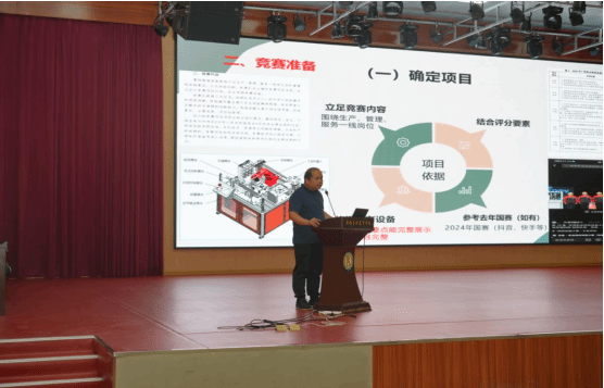 随后,舞台布景组、新能源汽车维修组、智能制造设备技术应用组、直播电商组、婴幼儿保育组5位金牌指导教师逐一上台分享带赛经验。各赛项金牌教师分别从赛事团队组建、比赛规则变化、大赛训练过程、赛后收获与反思等方面分享了备赛和参赛经验,为其他参赛团队提供宝贵的经验借鉴和有益的参考。
