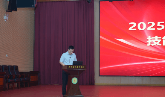 学校党委书记、校长陈世富对学校在2025年广西职业院校技能大赛中取得的成绩进行全面的总结。首先,他对全体参赛师生表示了衷心的祝贺和感谢,学校在本次大赛中取得的成绩离不开广大教师的奋斗和拼搏精神。同时,提出三点要求:一是推进“岗课赛证”深度融合,推动教学改革;二是建立“种子选手库”长效机制,做好梯队培养;三是组建指导教师培训智囊团队,强化师资接续。陈世富鼓励老师们坚定自信、勇往前行,在未来的技能竞赛和职业教育发展道路上,书写更绚丽的改革发展新篇章。