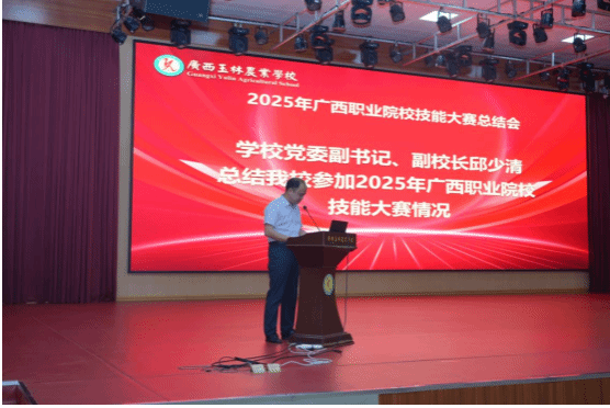 学校党委副书记、副校长邱少清总结我校参加2025年广西职业院校技能大赛情况