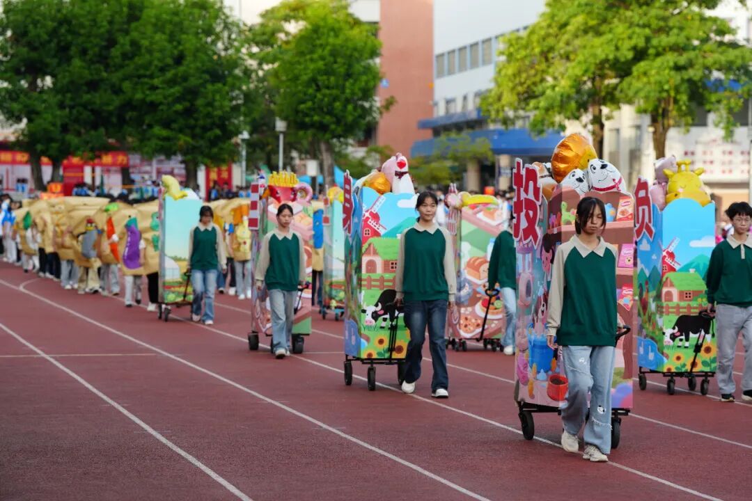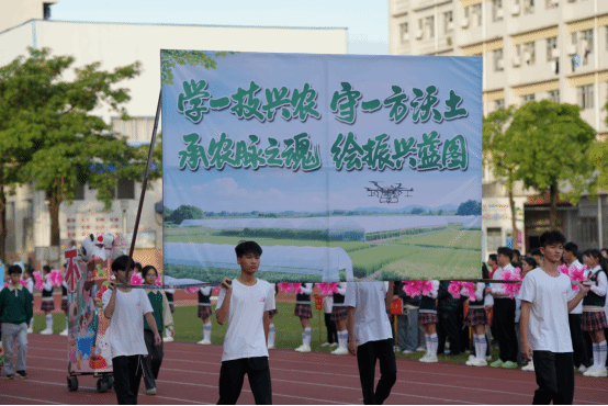 《运动员进行曲》的雄壮旋律响彻校园,国旗队、会徽队、鲜花队、醒狮队、裁判队、教师方阵、各专业科方阵依次迈着矫健的步伐入场。各专业科方阵创意迭出、精彩纷呈,巧妙融合家国情怀与 “三农” 情怀,深度融合传统文化与现代科技,生动融入企业文化与专业特色,全方位、多角度展现了广大学子朝气蓬勃、奋发向上的精神风貌。