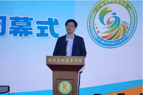 刘炳君为闭幕式致辞。他代表学校,向为艺术节辛勤付出的全体工作人员、指导教师,以及积极参与的每一位师生,致以诚挚的感谢;向在本届艺术节中表现优异、取得佳绩的集体和个人,表示由衷的祝贺。他聚焦第十五届全国运动会中广西运动员获得的傲人成绩号召全体师生,以广西运动员为榜样,将赛场上的拼搏精神、协作精神融入日常学习与生活中。在求知路上,勇于攻克难关、追求卓越;在集体中,懂得团结互助、携手共进;在成长中,始终保持昂扬向上的姿态,不怕挑战、不惧困难。他指出,本届校园体育文化艺术节以“矢志青春报国,赋能强国有我”为主题,正是学校落实“以体育心、以文化人、以美育人”理念,服务教育强国战略的生动实践。