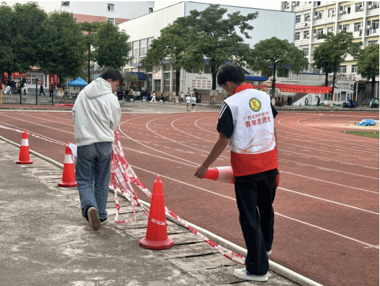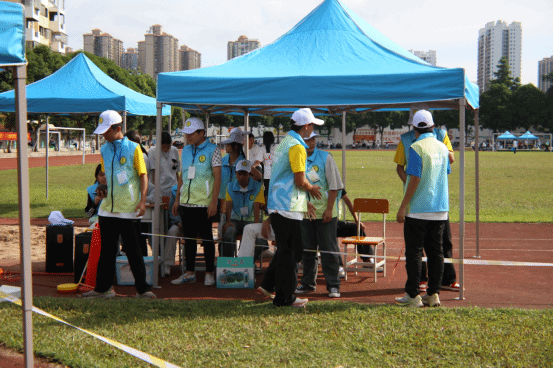 “兵马未动,粮草先行”,后勤志愿组是坚实的后盾。从开幕式舞台搭建到闭幕式场地清理,他们承担着引导咨询、秩序维护、赛事协助、搬运物资、清洁整理等多个岗位,还有医护人员随时待命处理运动损伤,垃圾桶定时清理、座椅及时归位,琐碎小事护佑着现场井然。