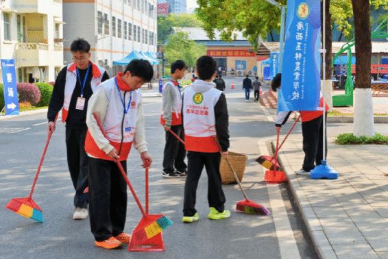 志愿者做好赛前环境的清洁工作