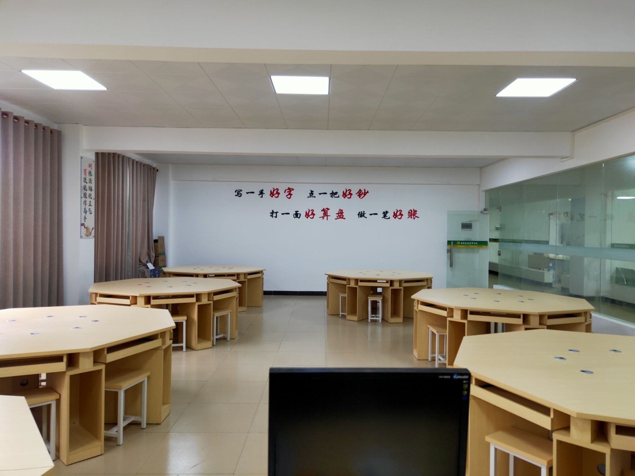 学校不断加强设备设施建设,财经商贸科专业实训设施设备齐全,设备资产总值超过500万元,拥有广西农业农村电子商务研究院、直播电商实训室,电子商务综合实训室、商品拍摄实训室、财税一体化实训室、会计手工实训室、会计仿真实训室、点钞收银实训室、营销实训室等。