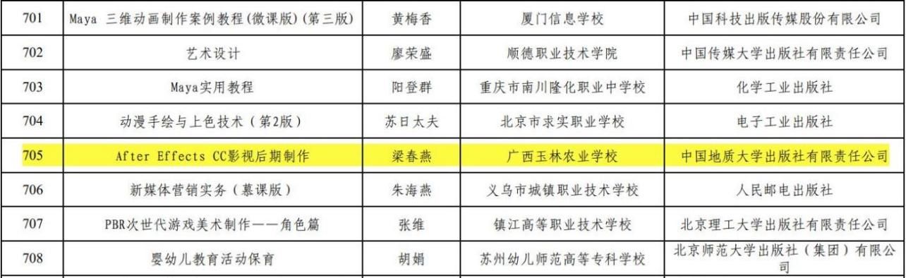 其中由梁春燕老师主编的教材《After Effects CC影视后期制作》成功入选教育部第二批“十四五”职业教育国家规划教材目录。