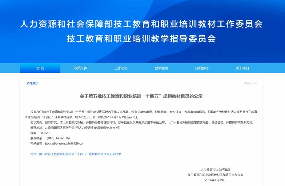 (通讯员:胡霞)近日,教育部职业教育与成人教育司公示第二批“十四五”职业教育国家规划教材书目,人力资源和社会保障部公布第五批技工教育和职业培训“十四五”规划教材入选名单,我校共3门教材入选!