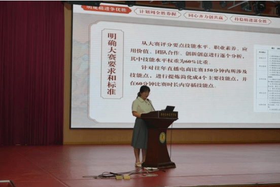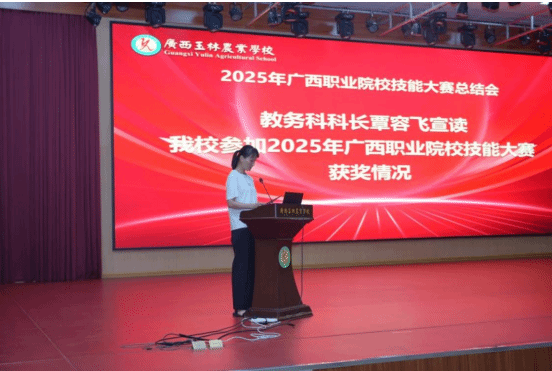 教务科科长覃容飞宣读我校参加2025年广西职业院校技能大赛获奖情况