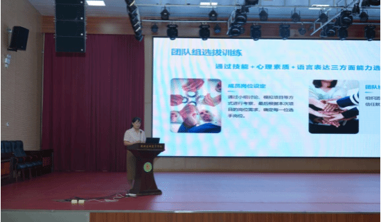 随后,舞台布景组、新能源汽车维修组、智能制造设备技术应用组、直播电商组、婴幼儿保育组5位金牌指导教师逐一上台分享带赛经验。各赛项金牌教师分别从赛事团队组建、比赛规则变化、大赛训练过程、赛后收获与反思等方面分享了备赛和参赛经验,为其他参赛团队提供宝贵的经验借鉴和有益的参考。