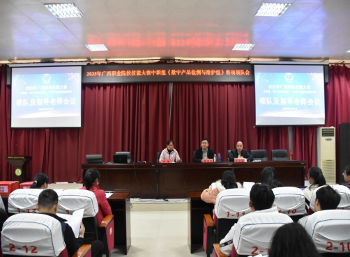 赛项领队及指导老师会议在学校勤勉楼一楼大会议室召开,由交通运输科科长何勉主持。学校党委副书记、副校长邱少清出席会议并发表热情洋溢、振奋人心的致辞,他从学校办学情况、承办大赛的初衷、准备情况以及对未来的展望等4个方面和各兄弟院校进行分享交流。他指出职业技能大赛是展示职业教育成果、弘扬工匠精神、培育技能人才的重要举措。此次《数字产品检测与维护组》赛项的开赛,紧扣数字时代发展趋势,促进了职业教育与产业需求的深度融合。