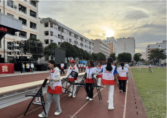 “兵马未动,粮草先行”,后勤志愿组是坚实的后盾。从开幕式舞台搭建到闭幕式场地清理,他们承担着引导咨询、秩序维护、赛事协助、搬运物资、清洁整理等多个岗位,还有医护人员随时待命处理运动损伤,垃圾桶定时清理、座椅及时归位,琐碎小事护佑着现场井然。