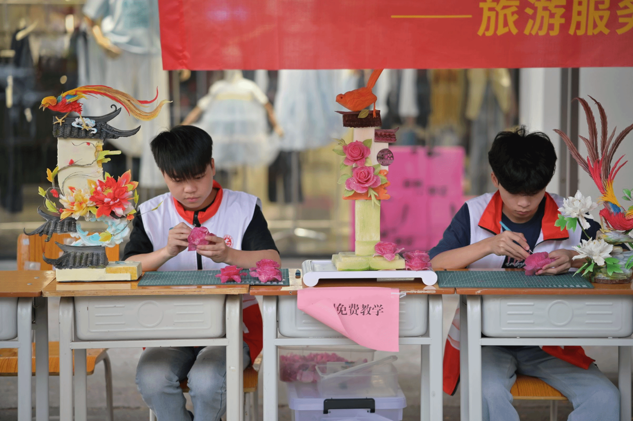 旅游服务与教育科团总支现场雕刻展示