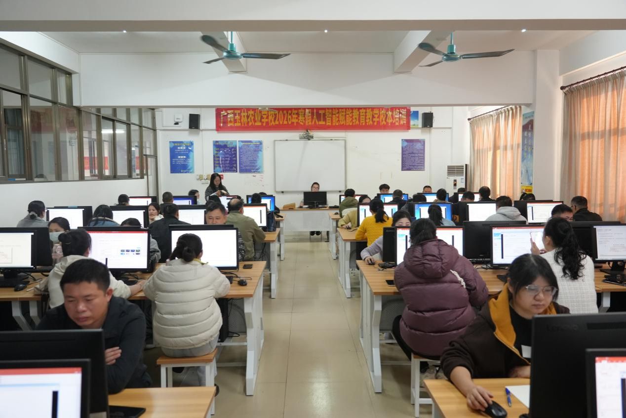 (通讯员:胡霞)为推动人工智能技术与教育教学深度融合,提升我校教师的数字化教学能力,助推教育数字化转型。1月15日,学校在知行楼计算机机房开展广西玉林农业学校2026年寒假人工智能赋能教育教学校本培训,180名骨干教师齐聚一堂,沉浸式学习人工智能技术在教育教学中的应用技巧。