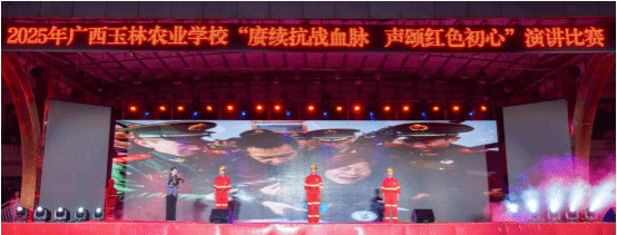 11月10日-14日,广西玉林农业学校校园体育文化艺术节期间,“星火映初心,青春赴新程”文艺晚会、“青春强音,共筑未来”歌手大赛、“凝聚复兴力量,唱响时代强音”合唱比赛、“赓续抗战血脉 声颂红色初心”演讲比赛及“赓续红色血脉·立志技能报国”艺术作品展五大活动相继开展。系列活动以“匠心铸魂、青春报国”为核心,通过文艺汇演、竞技比赛与艺术展览等形式,为师生呈现了一场融合思政教育、美育实践与技能展示的文化盛宴,彰显了“五育融合”的育人成果。