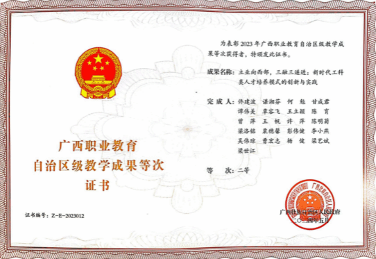近三年来,本专业在教学科研方面取得丰硕成果,获省级以上教学成果奖2项,公开出版国家级十四五规划教材1本、“十四五”广西壮族自治区职业教育规划教材1本,省级科研课题12项,国家级技能比赛二等奖1项,三等奖1项,省部级以上教学比赛和技能比赛一等奖8项、二等奖16项、三等奖23项。